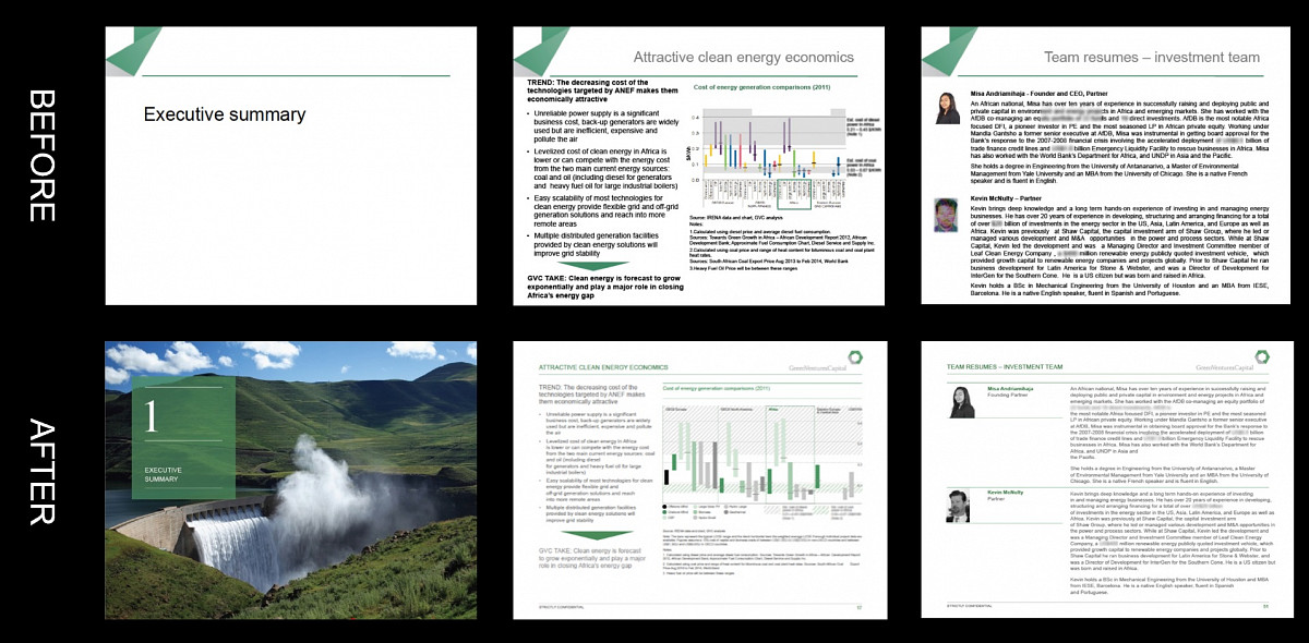 We’ve helped design and refine marketing decks and pitchbooks for a wide variety of investment banks, financial advisors and corporates, creating sharp-looking, professional documents for IPOs, Secondaries, client pitches and other confidential material.